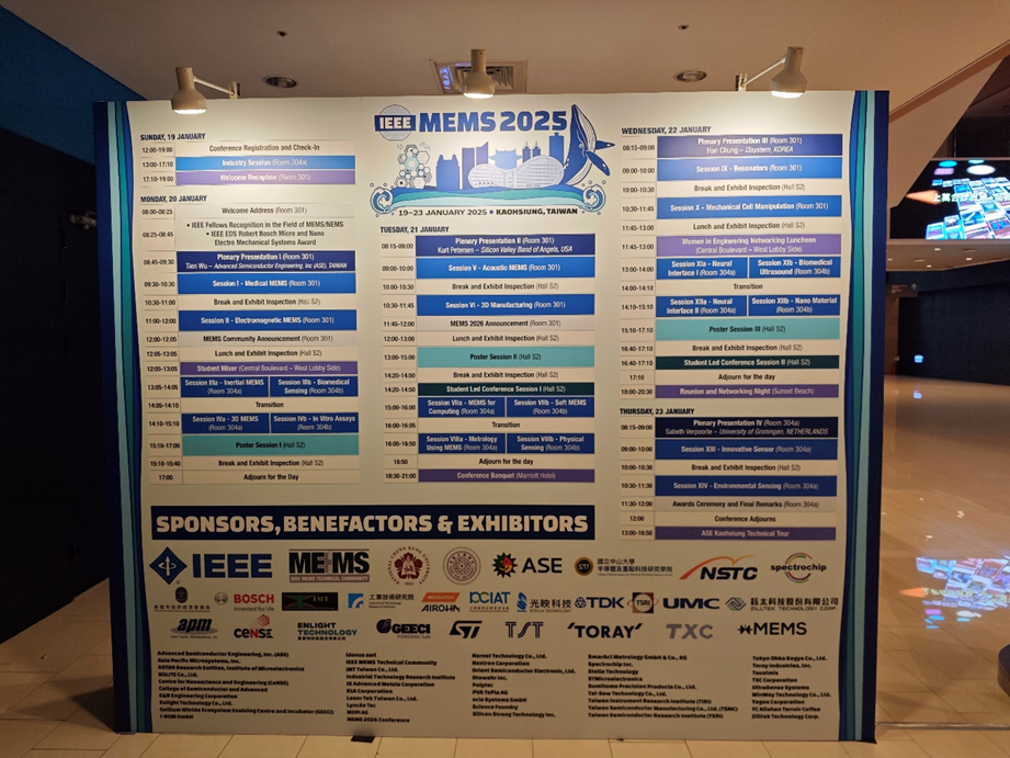 IEEE MEMS作为年度学术盛典,会议采取美洲、欧洲和亚洲三大洲轮值举办机制,聚焦微纳加工与集成技术、智能微纳传感器与执行器、微系统集成等领域的重要研究成果,旨在展示全球顶尖科研机构在MEMS前沿技术及应用方面的突破性进展。本次会议于今年1月在中国台湾省高雄市举行。