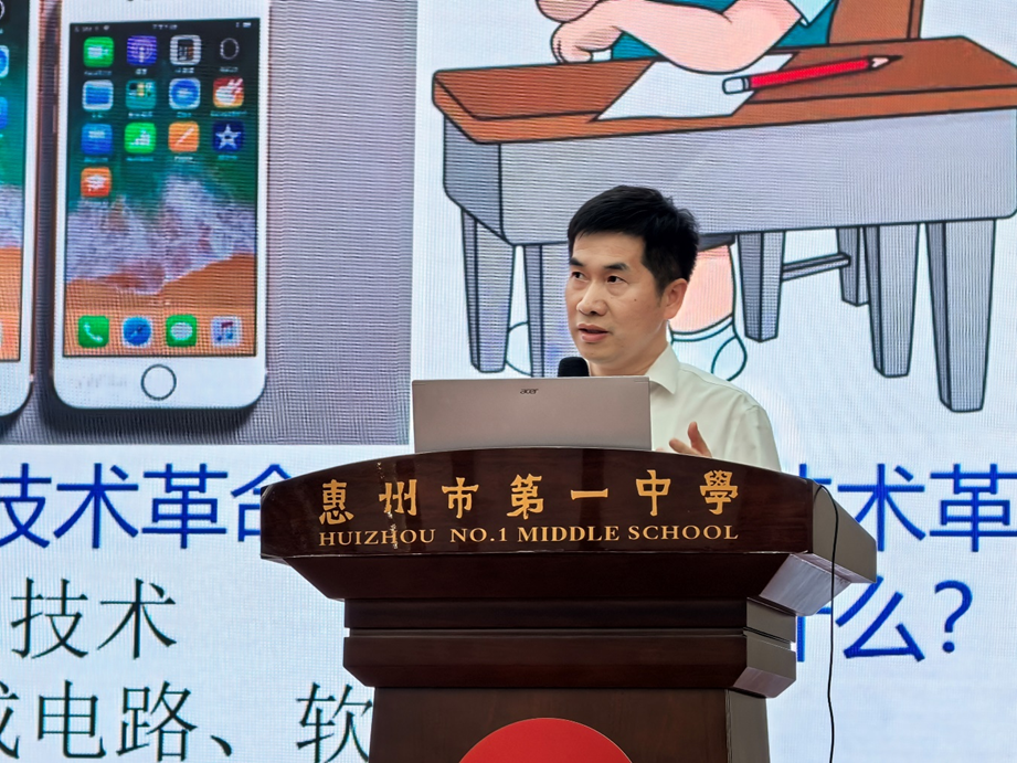 4月的惠州春风和煦,花明柳媚。当日下午,惠州招生组首先来到惠州市第一中学。在惠州一中报告厅,虞志益为在场学生带来主题为《集成电路与人工智能》的科普讲座,为在场学生系统讲解了芯片在当前人工智能领域的重要作用。讲座还从我国集成电路产业规模入手,详细讲解了行业快速发展的趋势和面临的重大挑战。