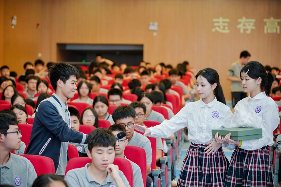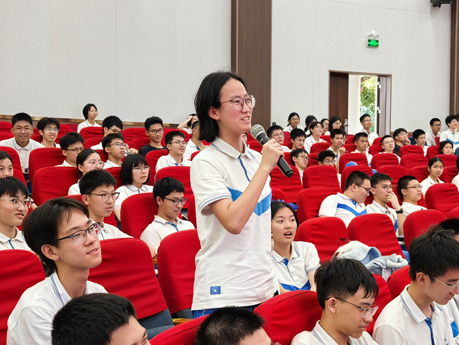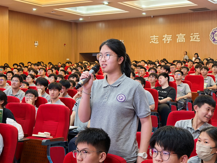 讲座会后,虞志益、徐政基还回答了在场学生提出的问题。学生们热情高涨,纷纷举手提出自己的问题,充分表现出了对集成电路产业热切的好奇心以及助力我国摆脱芯片“卡脖子”难题的热血抱负。惠州招生组与校友会为在场同学们送上纪念品,鼓励他们在高中继续努力学习,未来加入中大,发光发亮,为个人发展、国家建设贡献青年力量。