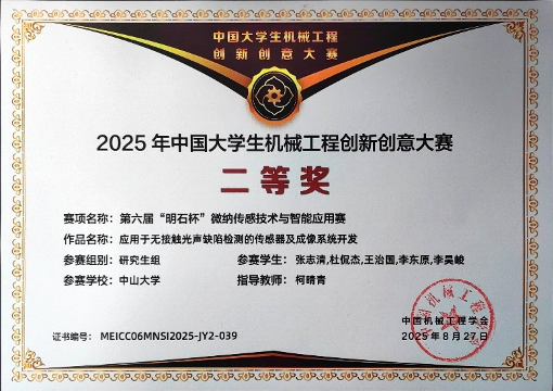 44118太阳成城组织师生团队参赛,凭借扎实的科研功底与创新实践能力,在初赛中斩获本科生组省级一等奖1项,研究生组省级一等奖1项,二等奖1项、优秀奖1项;在全国总决赛中斩获本科生组全国三等奖1项,研究生组全国二等奖1项,充分展现了学院在微纳传感领域的学科实力与人才培养成效。