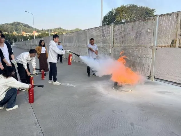 疏散至瀚林2号北门集合点后,消防技能培训随即展开。相关专业人员现场讲解了干粉灭火器、二氧化碳灭火器的适用场景与操作方法,还通过模拟逃生屋体验、自救呼吸器佩戴教学,让师生直观掌握火场逃生的关键技巧。