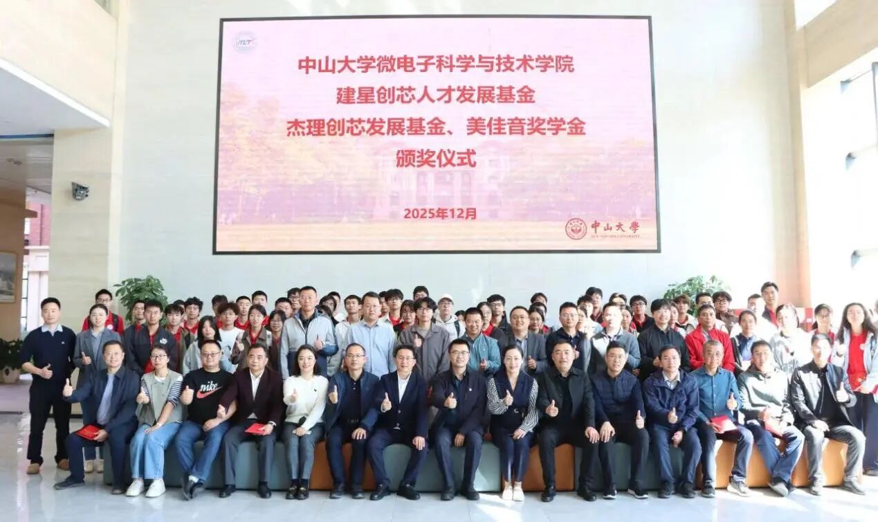 仪式尾声,全体参会人员前往一楼合影留念,定格下这场汇聚爱心、责任与梦想的珍贵瞬间。此次颁奖仪式不仅是对优秀师生的表彰,更是产学研协同育人的生动写照。未来,学院将继续携手社会各界力量,为微电子人才成长搭建更广阔的平台,为实现高水平科技自立自强、推动芯片产业高质量发展贡献更多中大力量!