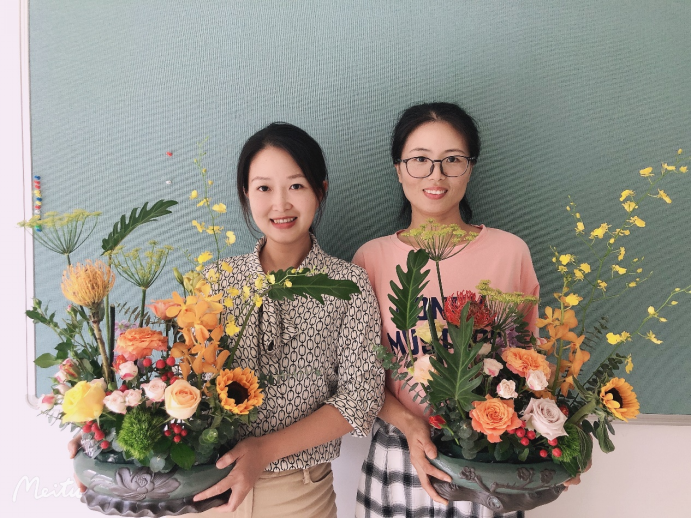 组织教职工参加学校插花活动