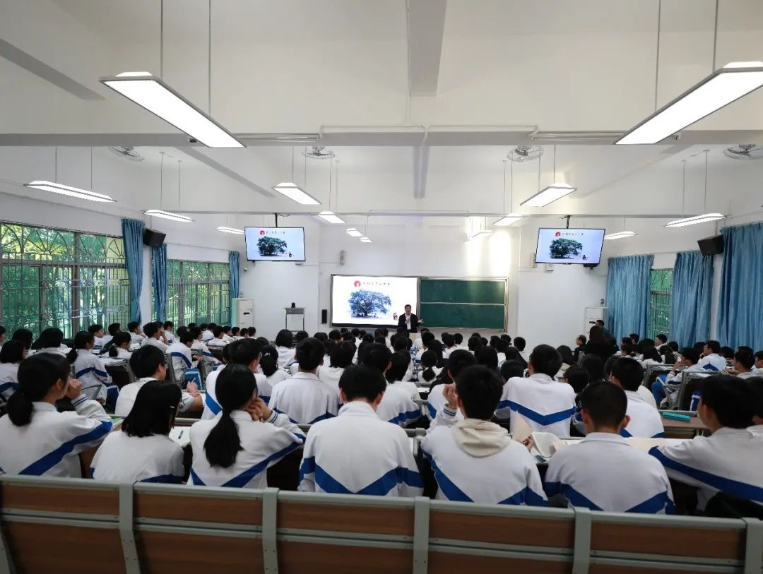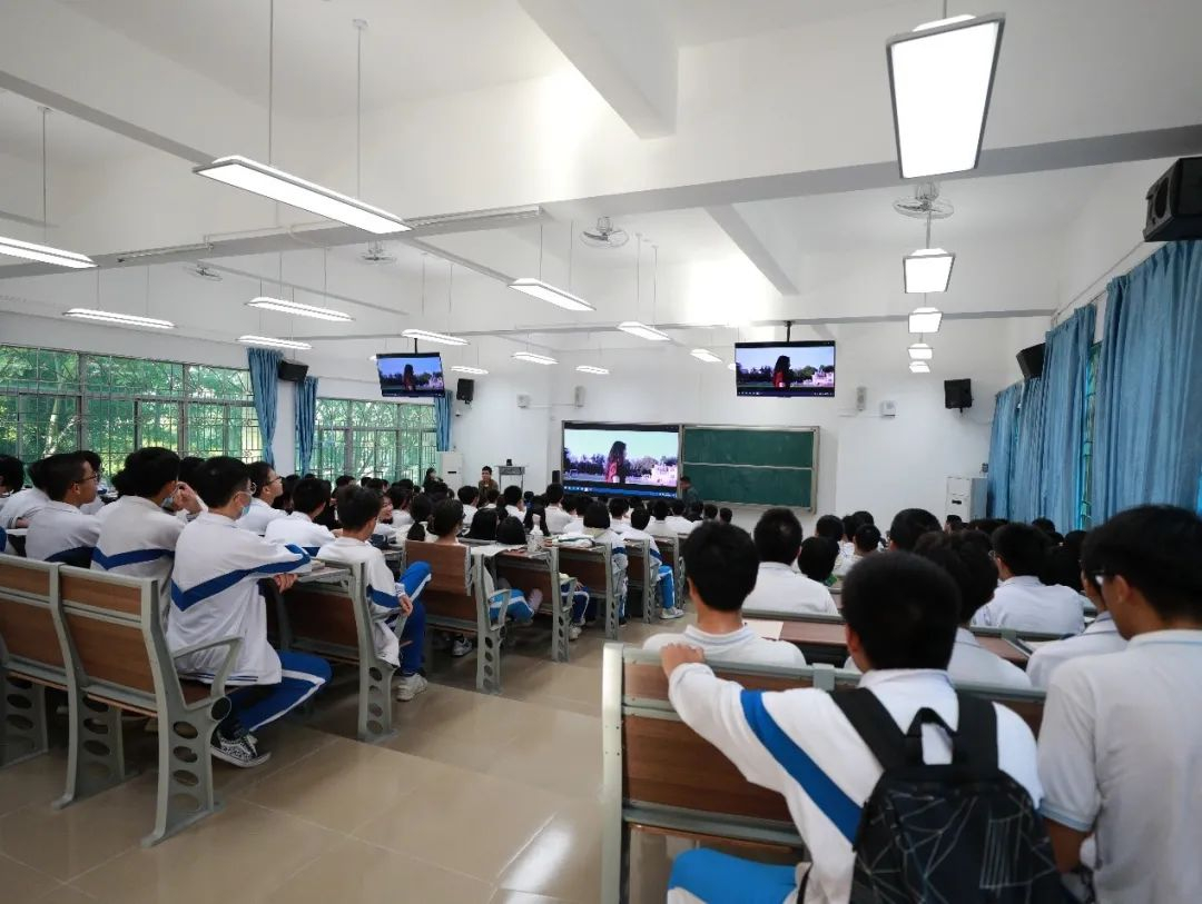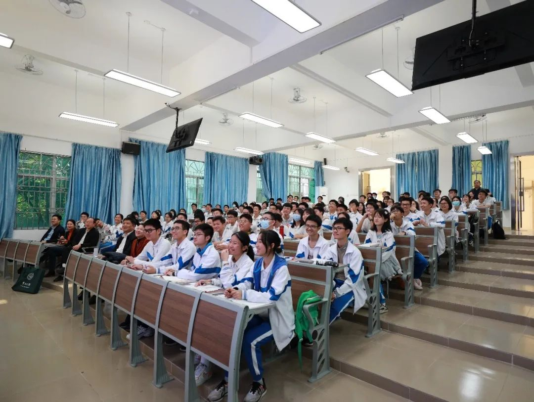 靳祥鹏书记为惠州一中师生介绍了中山大学当前在国内外的排名情况与办学实力,结合我校“三校区五校园”办学格局与文理医工融合发展这一特点为同学们答疑解惑,鼓励同学们积极报考中山大学。