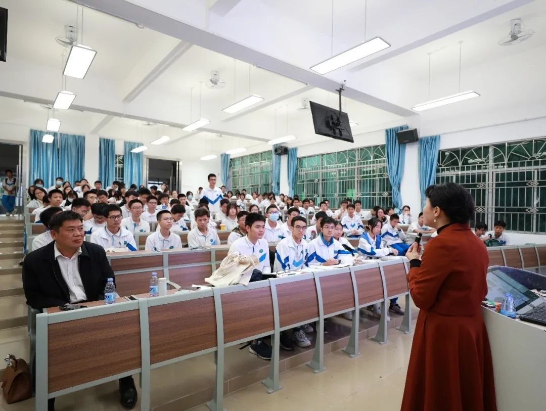 中山大学招生办罗晶副主任表示回到母校倍感亲切,并介绍了中山大学的学科布局、发展前进、人才培养机制和招生政策,并强调中山大学作为一所著名的“双一流”综合性大学,正处于高速发展期,她期望两校能建立长久的合作机制,推动深度交流,共同助力学子成长成才。