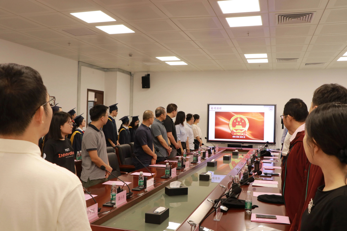 典礼伊始,全体与会人员起立齐唱国歌。王昕副书记向毕业生们宣读孙中山先生毕业训词,全体毕业生起立聆听并齐声回应“谨遵教诲”。