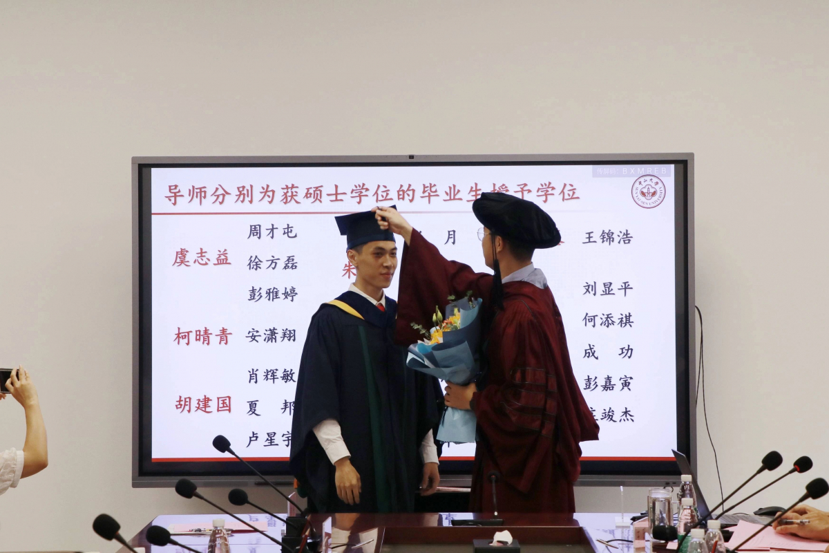 各位导师分别为获硕士学位的毕业生颁发学位证书并拨穗正冠,意味着毕业生已经学有所成,即将踏上人生新的征途。