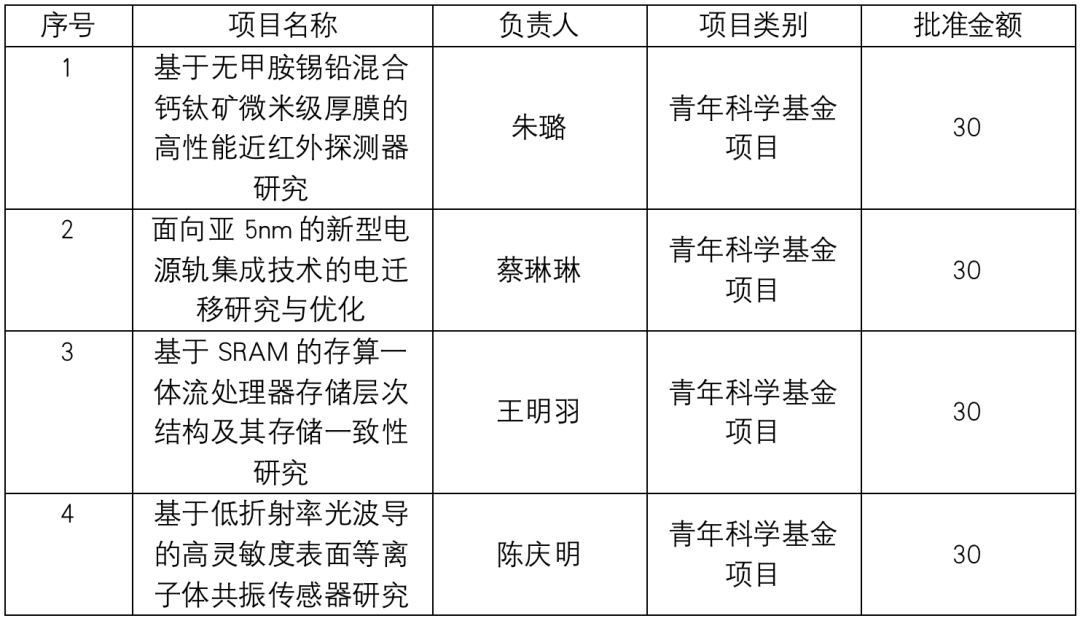2022年9月8日,2022年度国家自然科学基金项目评审结果正式公布,我院青年教师共获得4项青年科学基金立项资助,青年基金获资助率达36%,共获得立项经费120万,均属于信息科学部,取得历史新突破,具体立项名单如下: